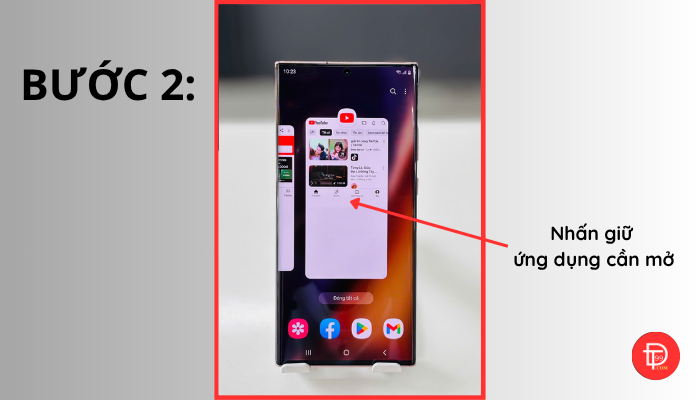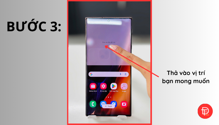 Bước 3: Kéo và thả ứng dụng vào vị trí bạn muốn mở (trên hoặc dưới)